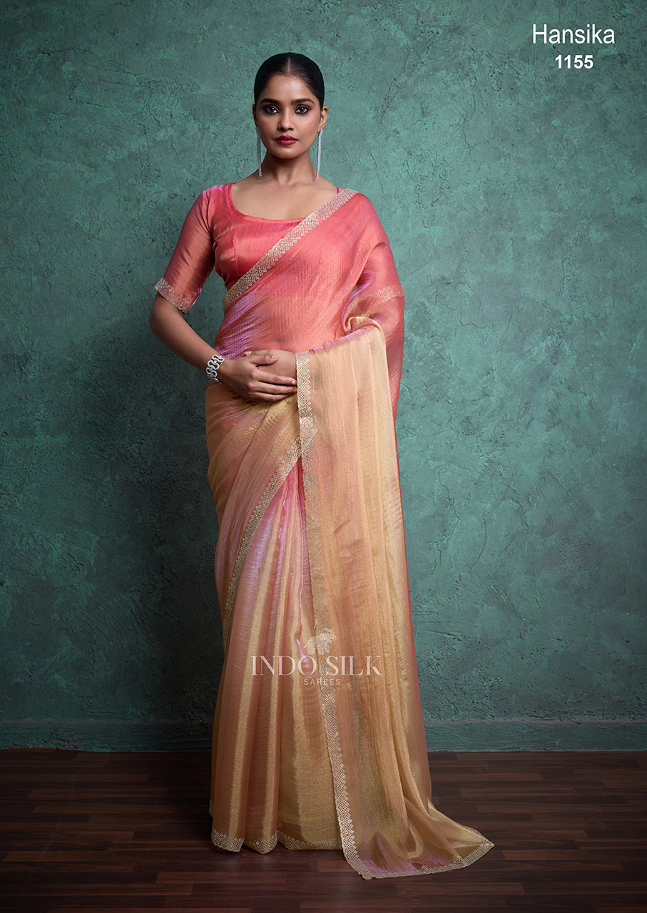Add a touch of sophistication to your ethnic wardrobe with the Hansika Premium Peach Gold Silk Saree, designed for women who love timeless elegance. Crafted from high-quality silk, this saree features a graceful peach-gold dual tone with a delicate handcrafted border, giving it a refined and luxurious look.